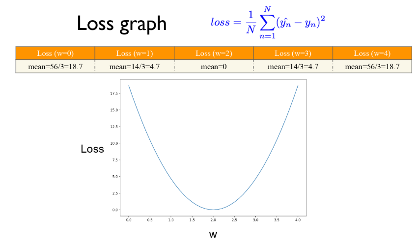 Loss 가 최소가 되는 w 값을 찾는 것이다.
